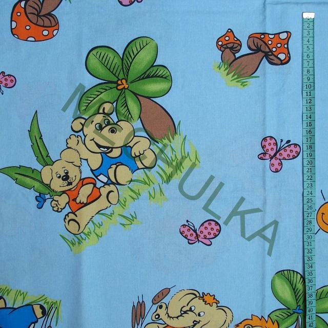 Zvířátka na pikniku - ZBYTEK 1,4 m š.88 cm - světle modrá látka - bavlna - VÝPRODEJSkladem 1 ks82 CZK/ ks68 CZK bez DPH